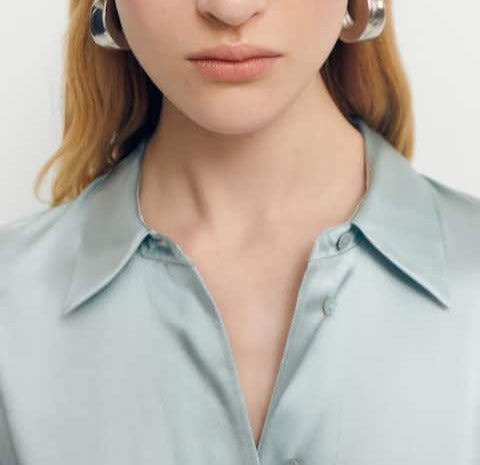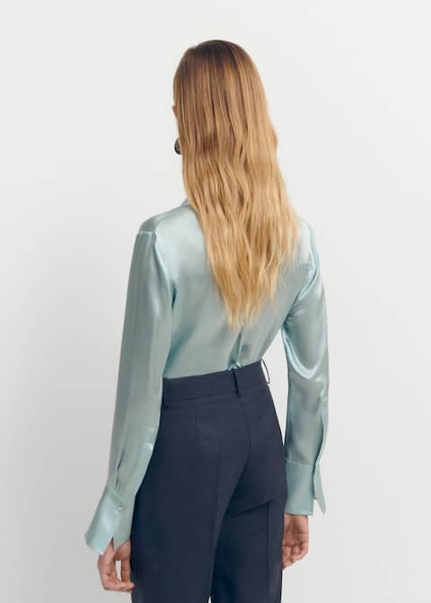 Silk Satin 100%. Straight design. Shirt-style collar. Long sleeve with buttoned cuffs. Concealed button closure on the front. Party and events collection. Selection Collection.