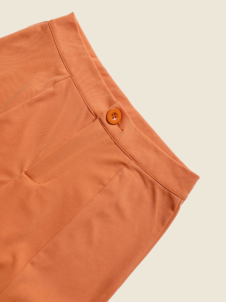 High Waist Solid Double Slit Hem Bootcut Leg Pants