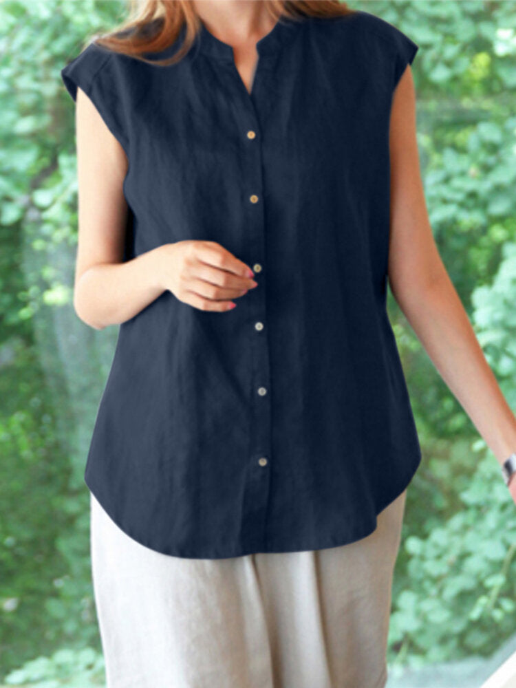 Solid Casual Stand Collar Blouse For Women