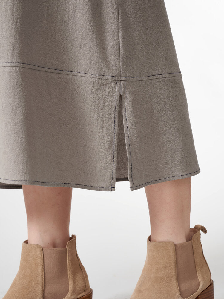 Solid Slit Hem Long Sleeve Crew Neck Vintage Women Dress